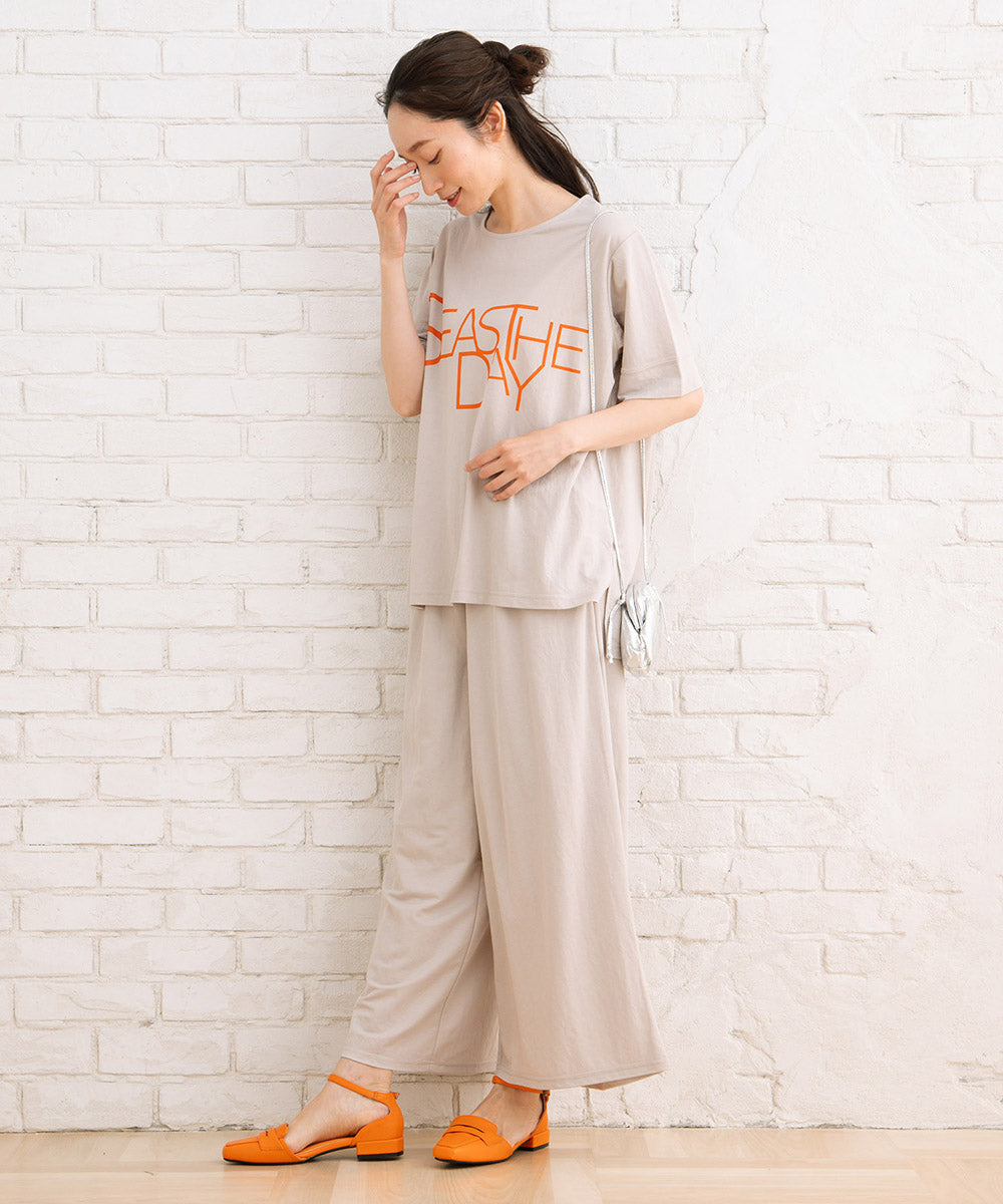 同じ素材を使用したワイドパンツとのセットアップもおすすめです。