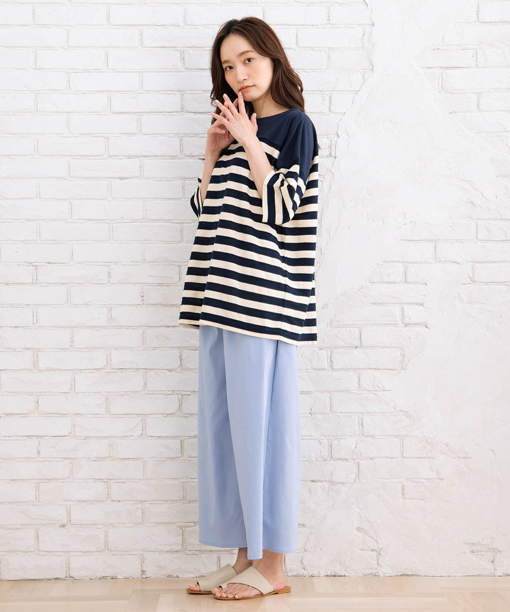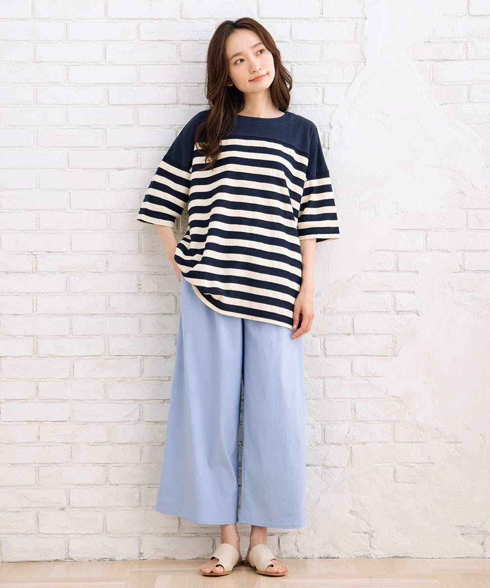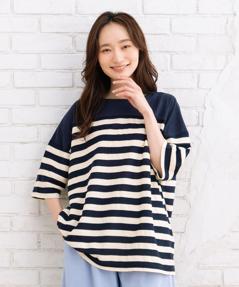 カジュアルながらもどこかいつものボーダーとは違ったデザインで、普段のTシャツスタイルをアップデートしてくれます。