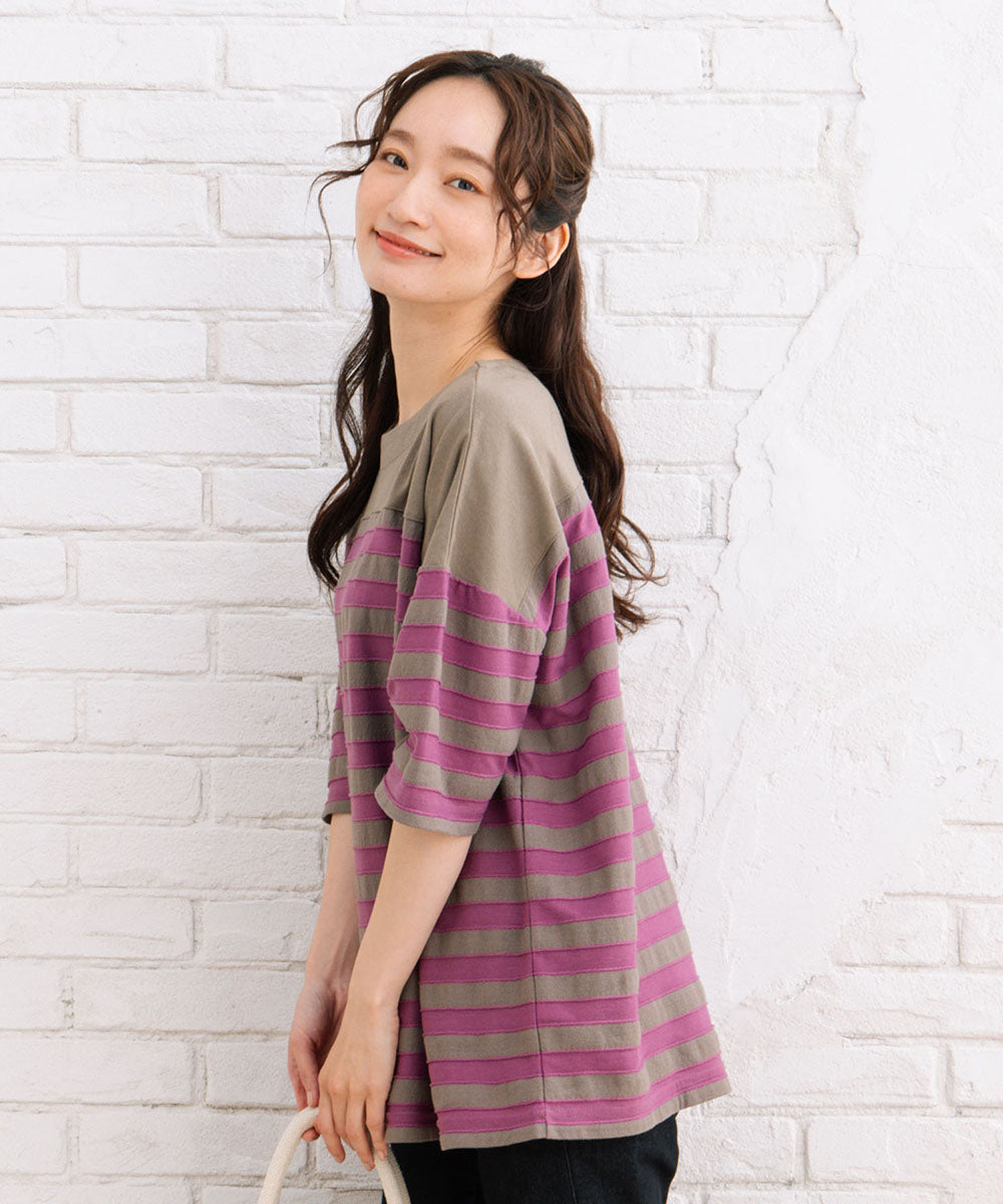 カジュアルながらもどこかいつものボーダーとは違ったデザインで、普段のTシャツスタイルをアップデートしてくれます。