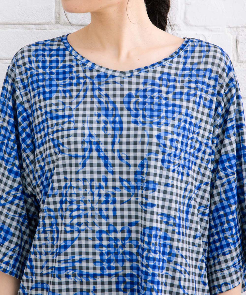 さらりとしたエスパンディ素材が心地よい、アソートプリントカットソー。