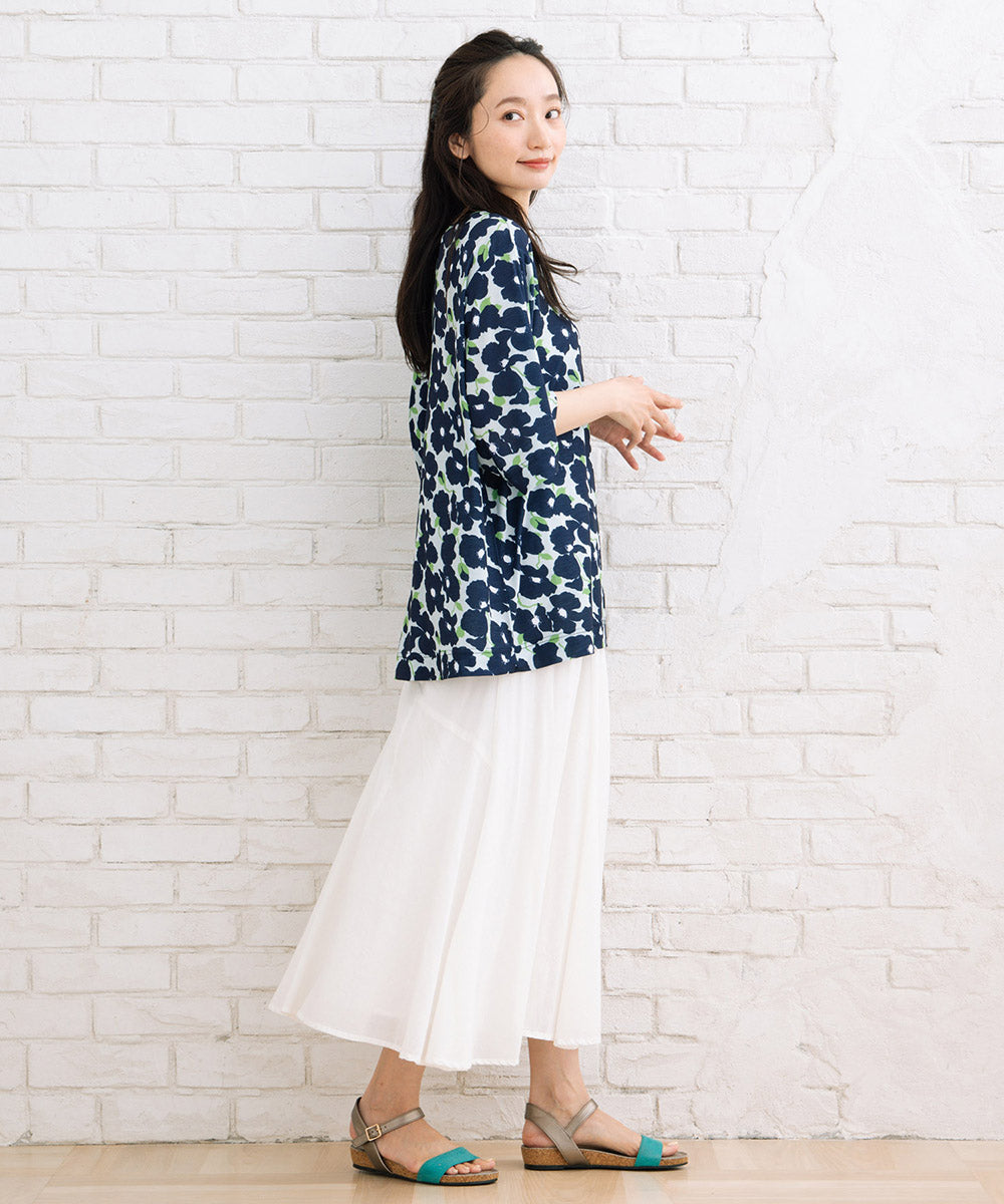 デニムやスカートなど、どんなボトムスとも相性抜群で、着回し力の高さも魅力です。