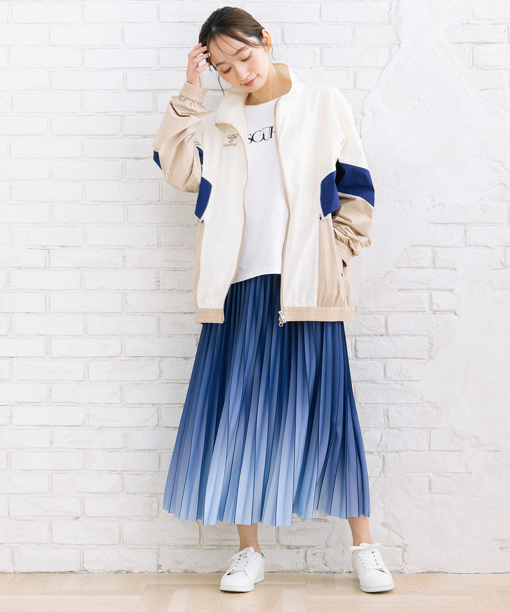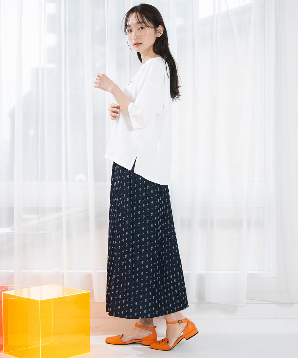 スカートと合わせれば、ロゴTを女性らしく取り入れたスタイリングもおすすめです。