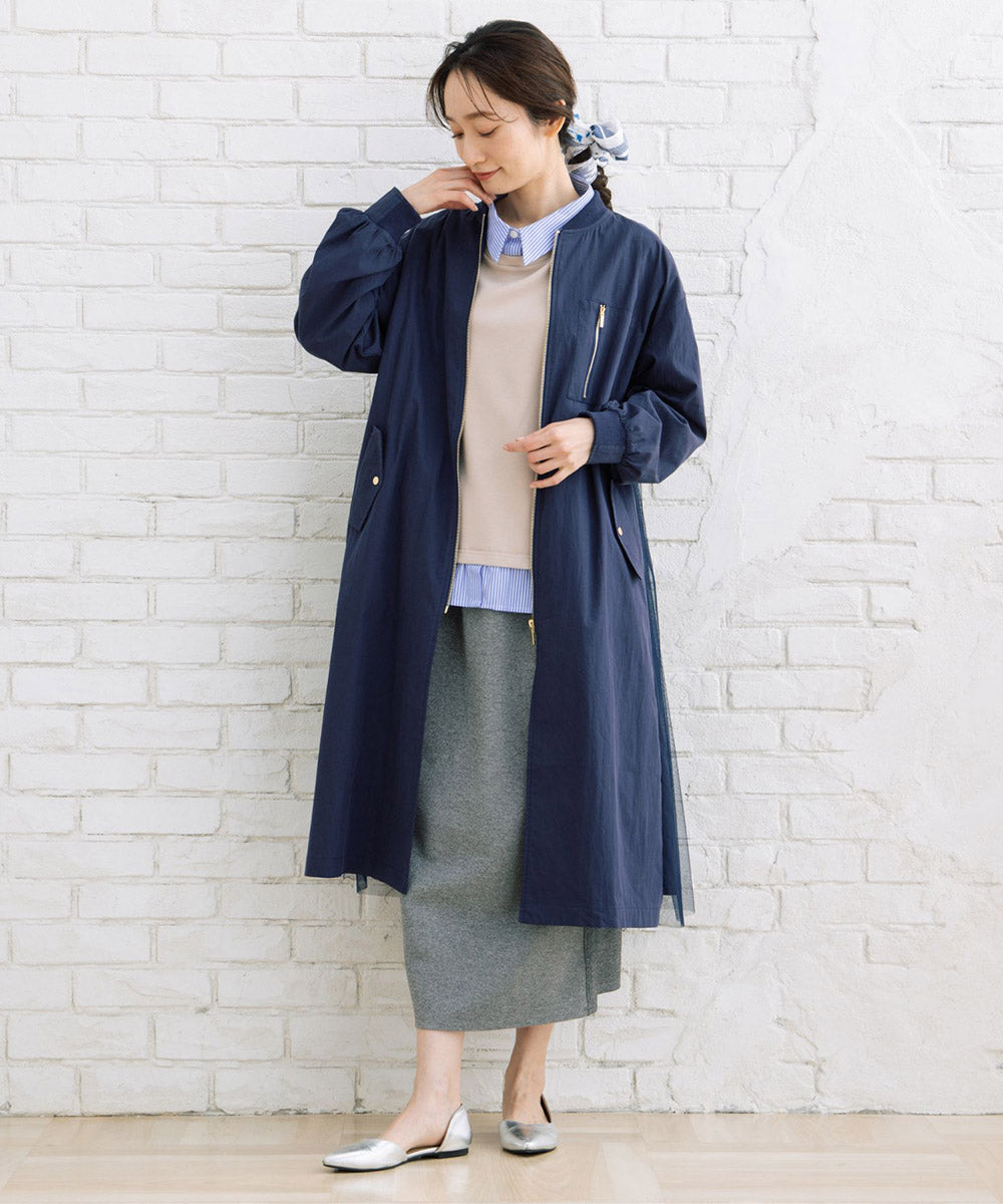 チュールを施すことで、カジュアルになりすぎず、ミリタリーデイストを抑えてデイリーに合わせやすくなっています。