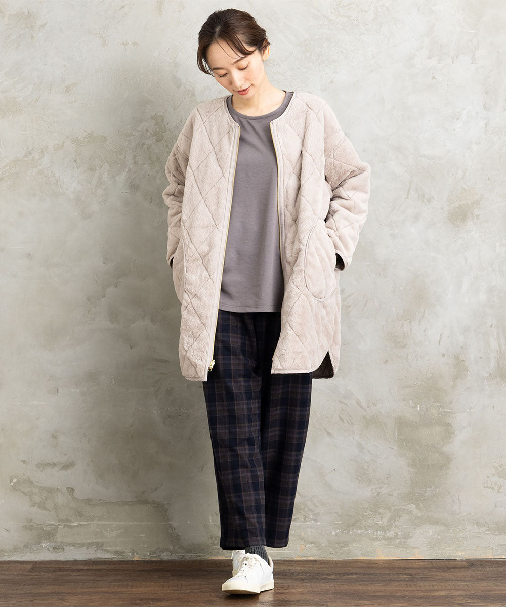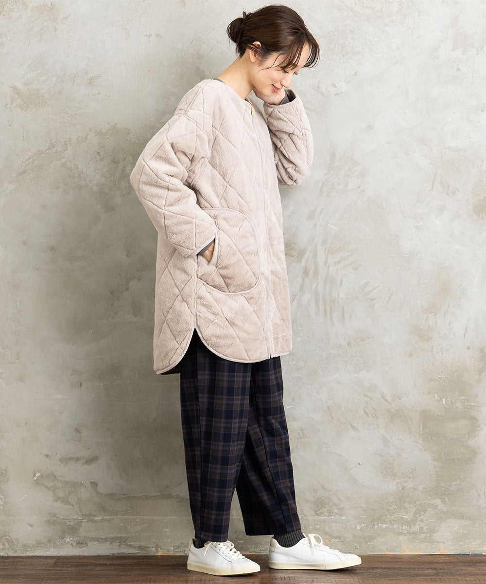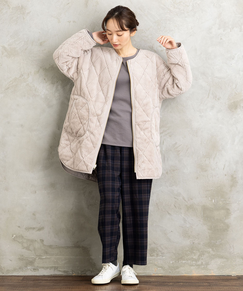 ふんわりとしたファー面と、すっきり見えするキルティング面の2WAY仕様。