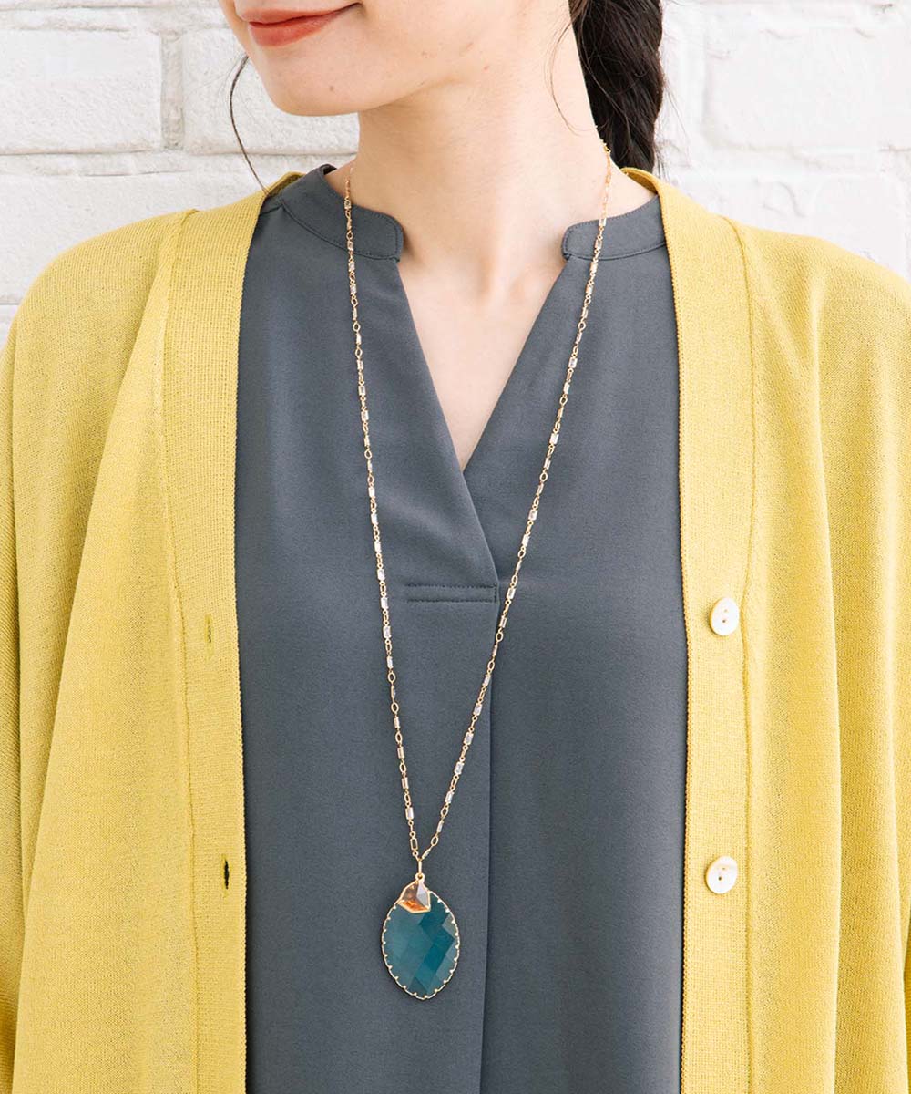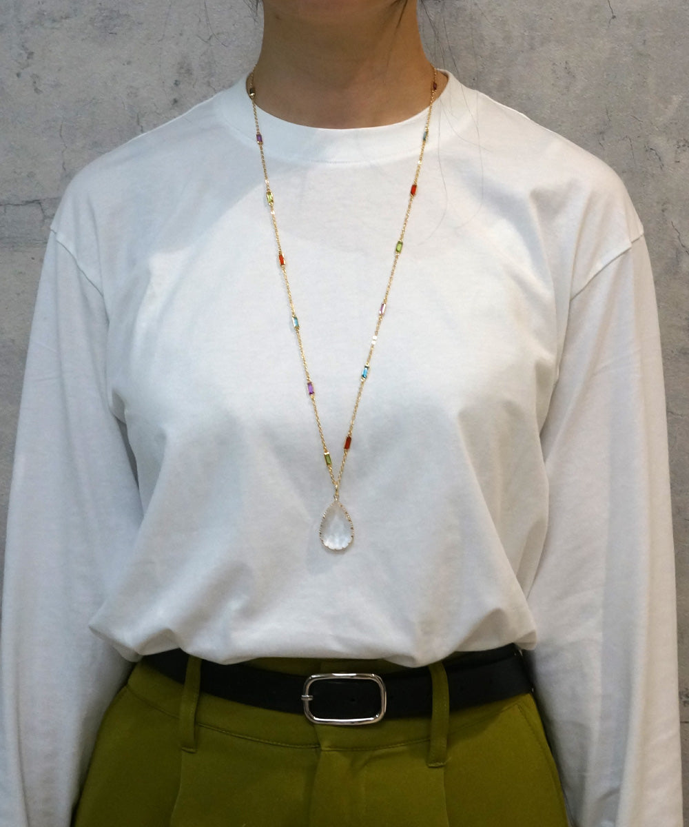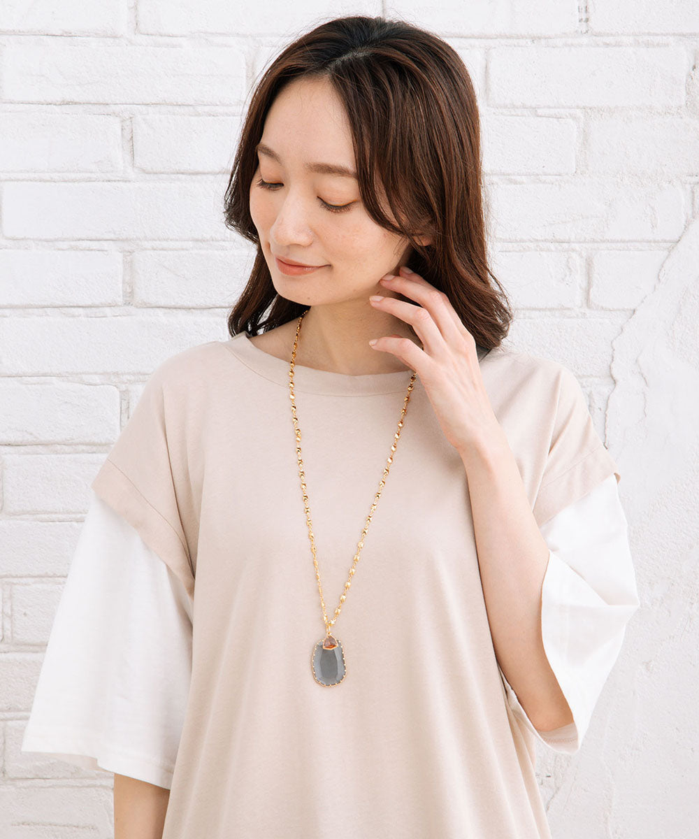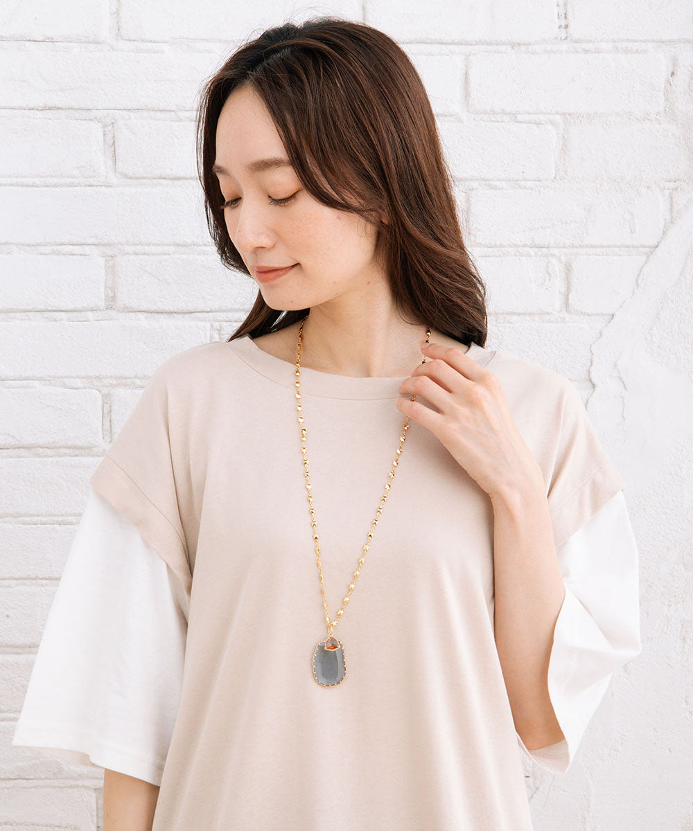 長めのチェーンはIラインを強調し、スタイルアップ効果も期待できます。