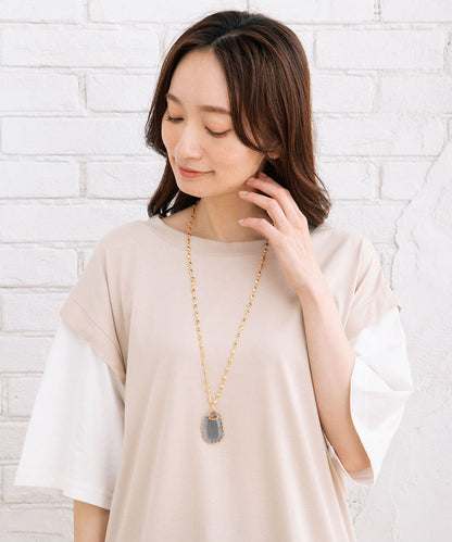 トレンドのクリア素材と天然石風のアソートデザインが魅力のネックレス。