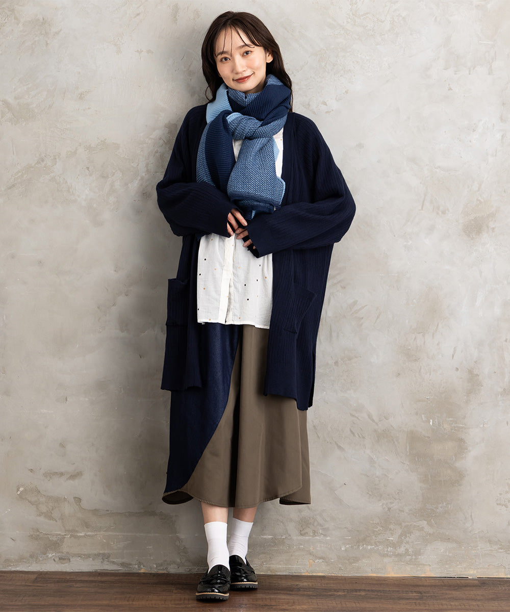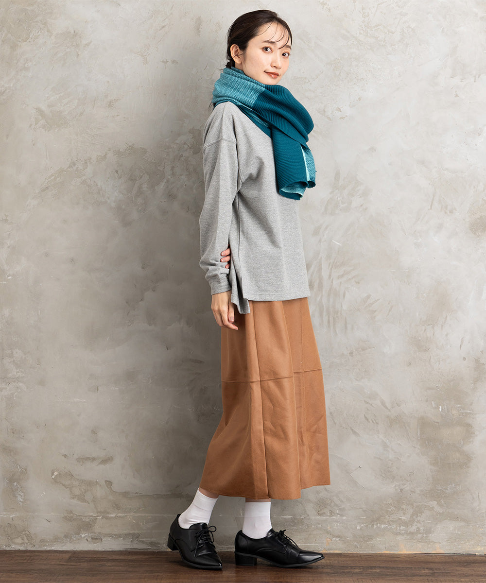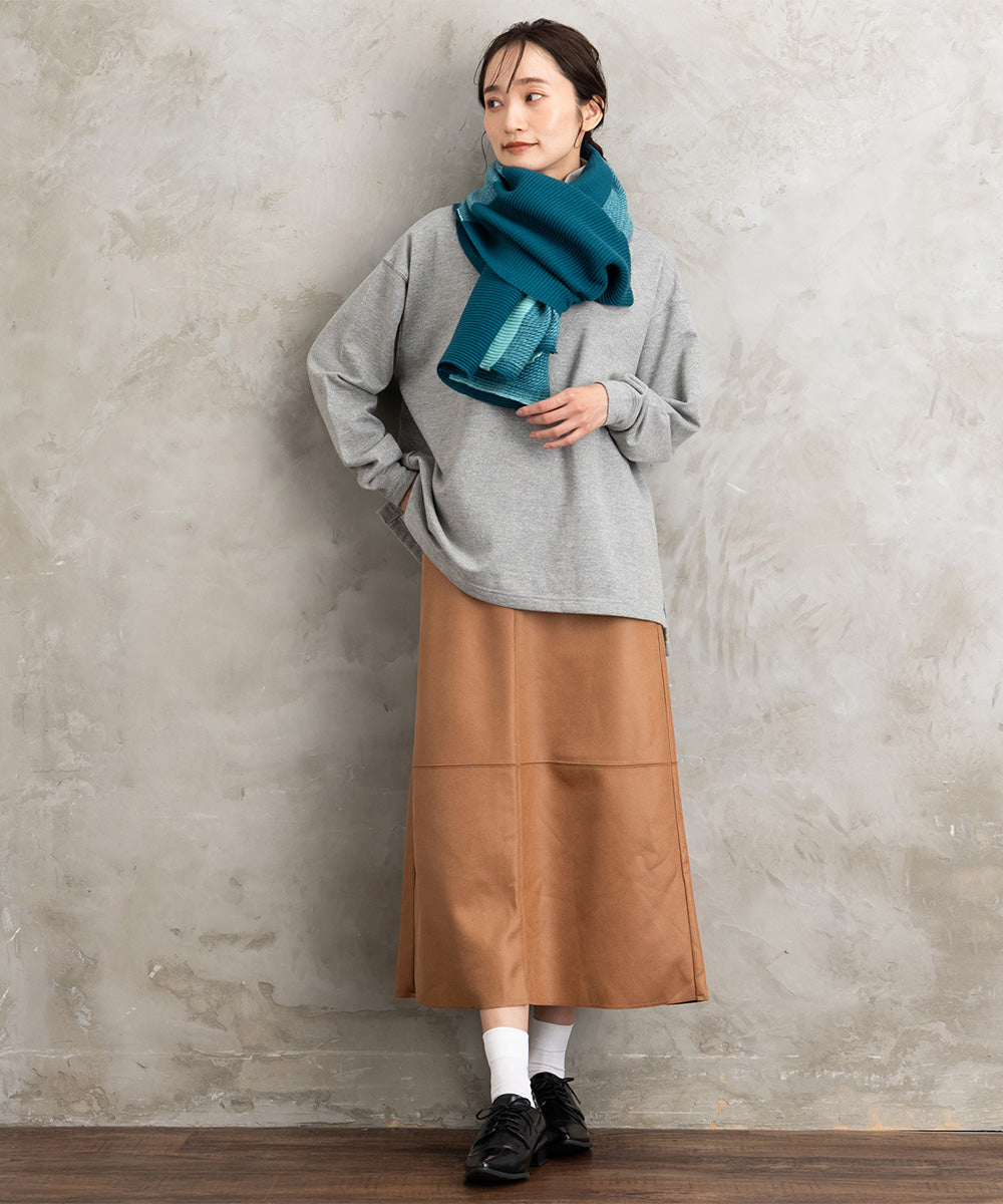 #大きいサイズコーデ #sabstreet #秋冬コーデ #ストール #カラーブロッキング #プリーツデザイン #きれいめカジュアル #冬小物