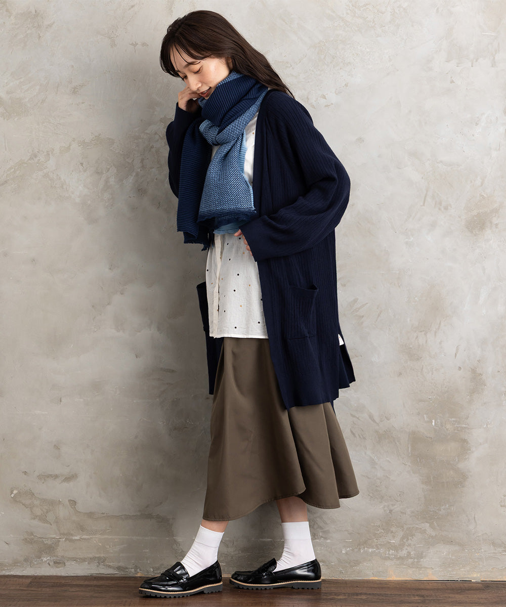 細やかなプリーツ加工が立体感を生み、巻くだけでコーディネートに華やぎをプラスします。