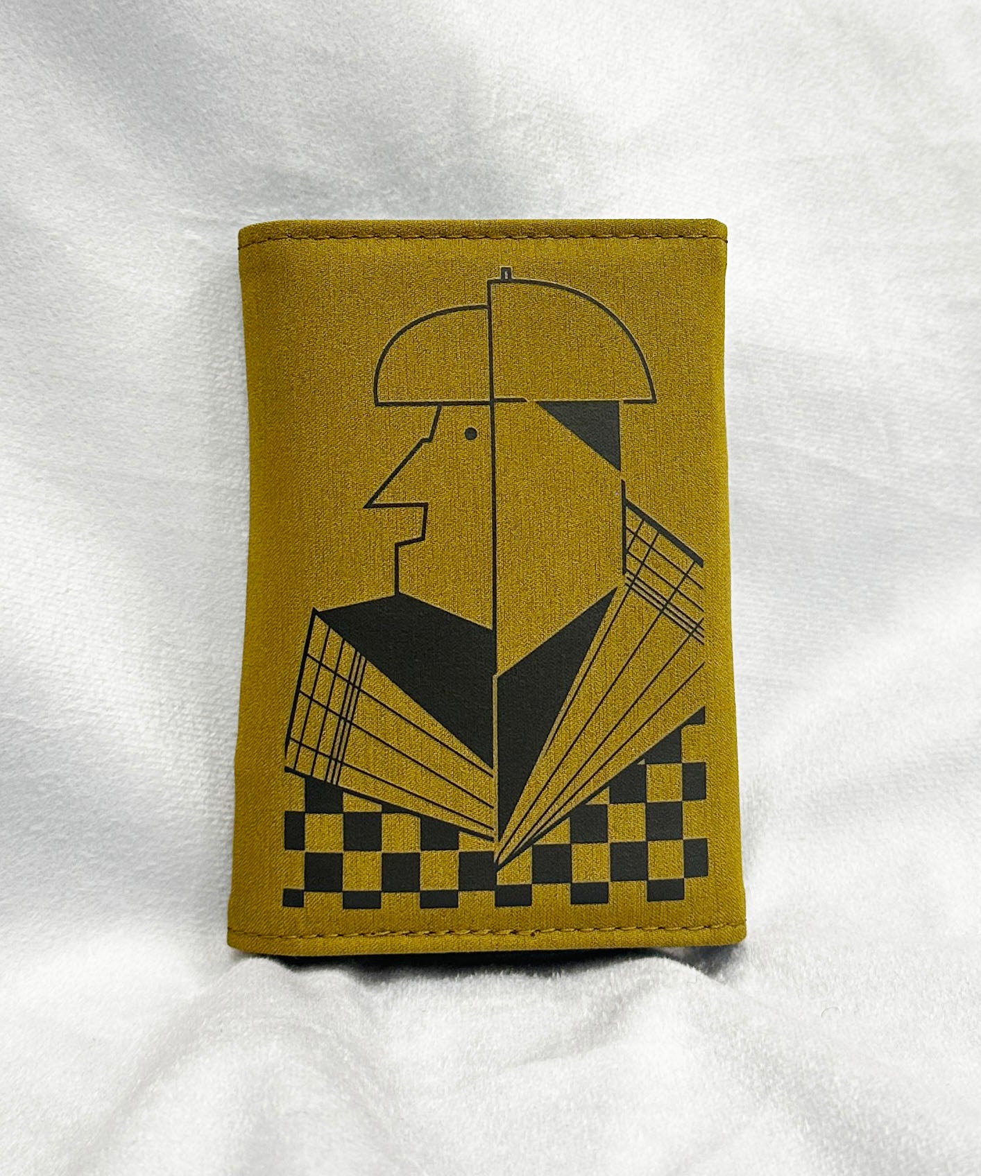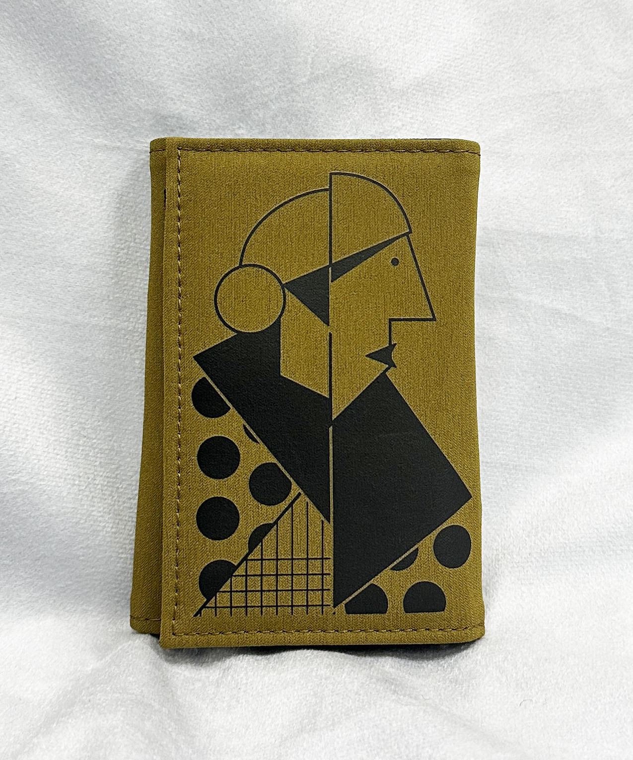 クラシカルな横顔を描いたグラフィカルなプリントが印象的な二つ折りウォレット。