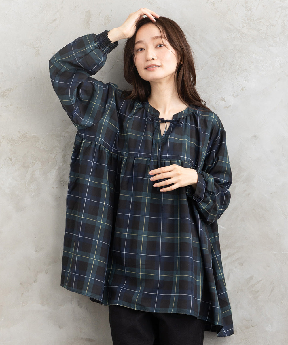 ふんわりとしたギャザーと優しいチェック柄が、大人のナチュラルスタイルにぴったりの一枚。