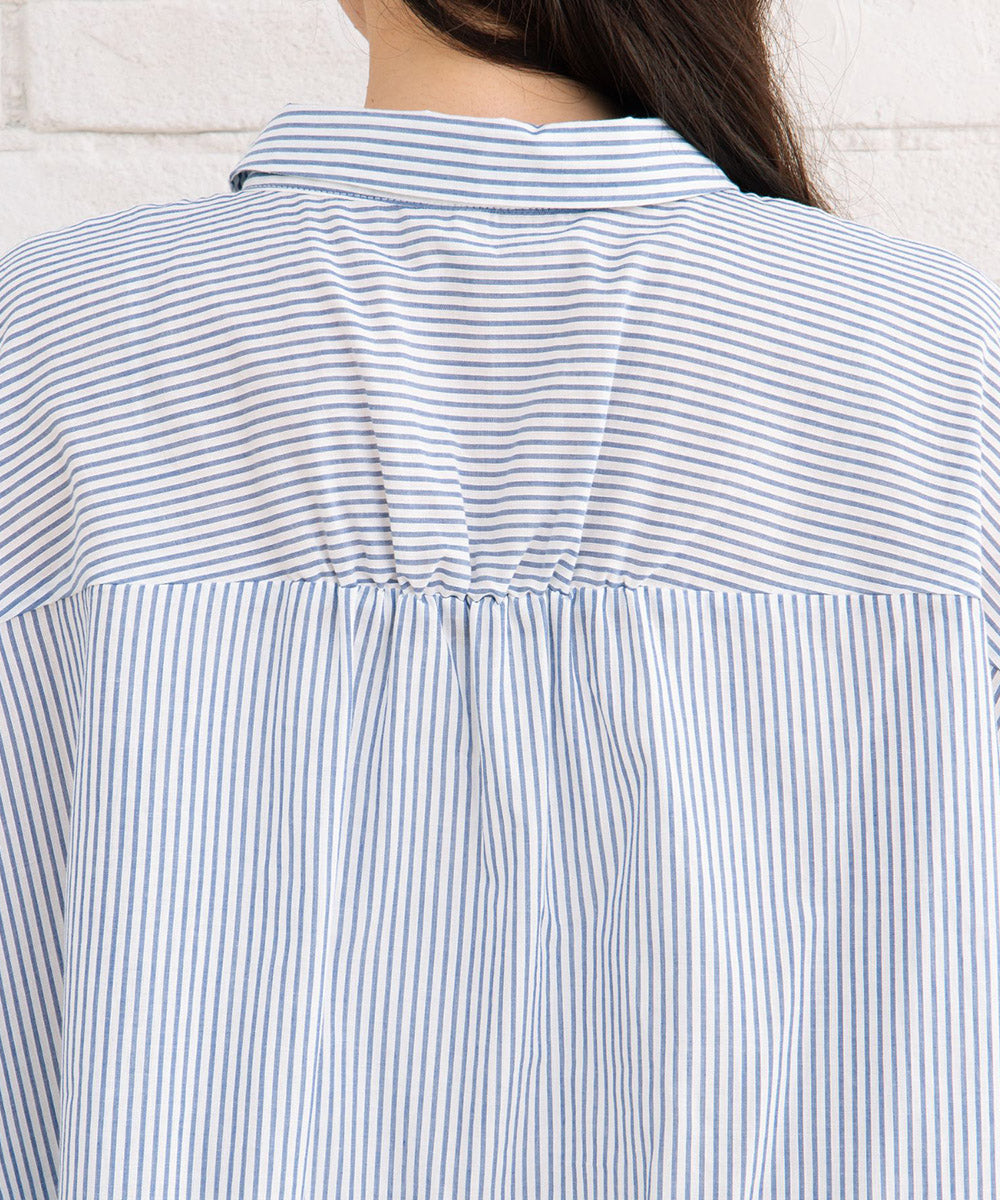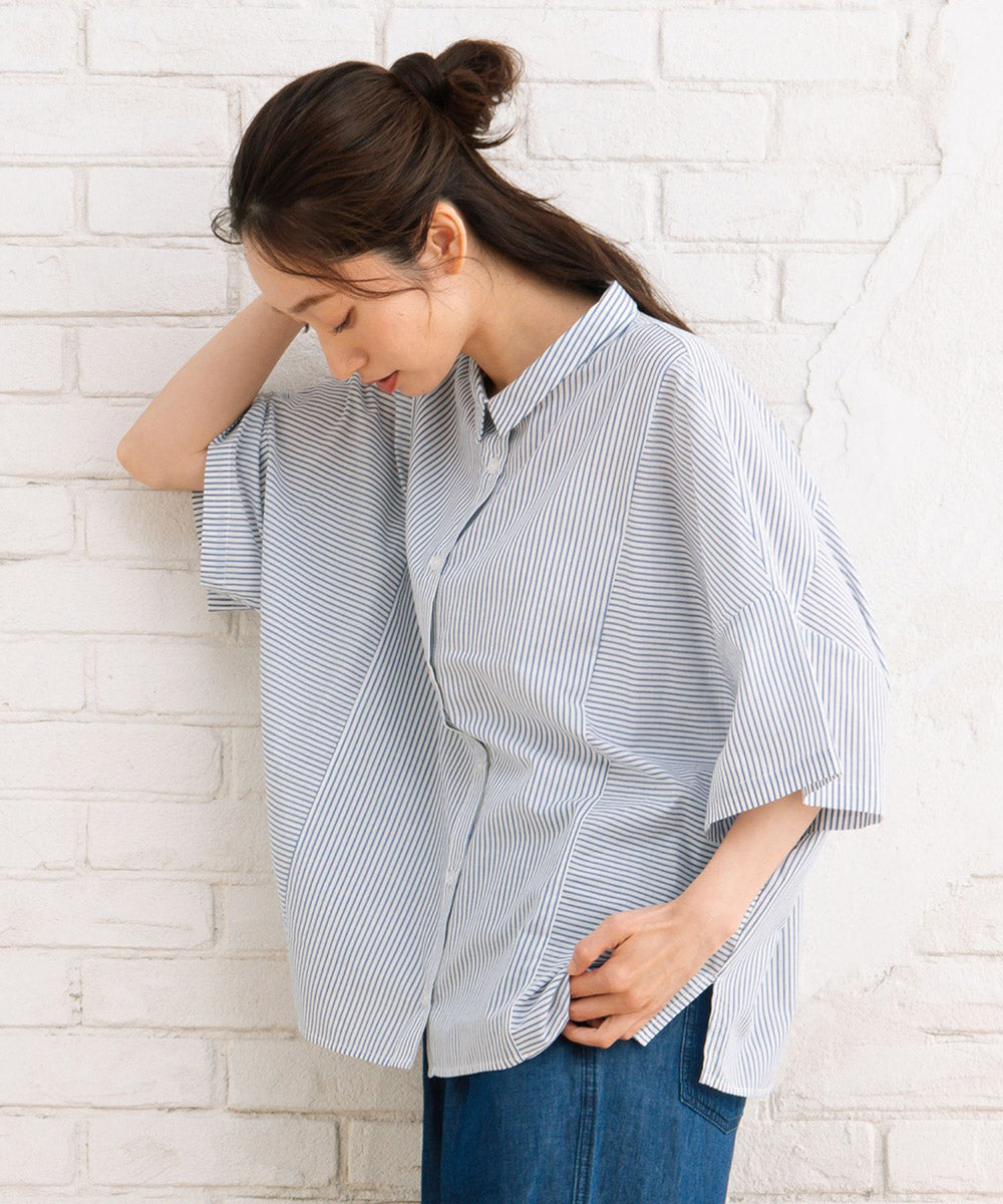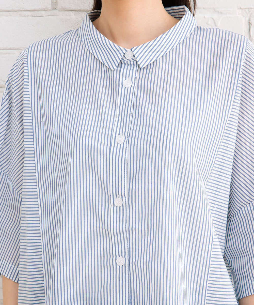 ストライプを巧みに切り替えた、表情豊かなピンストライプボクシーシャツ。