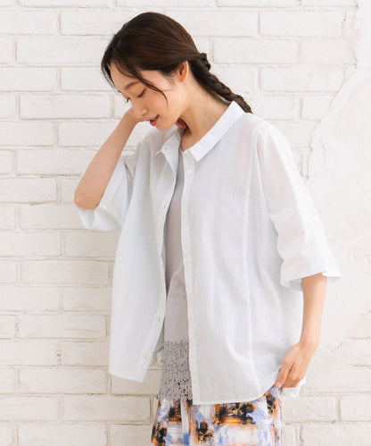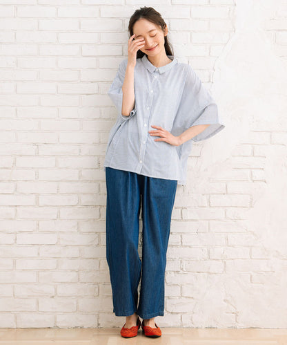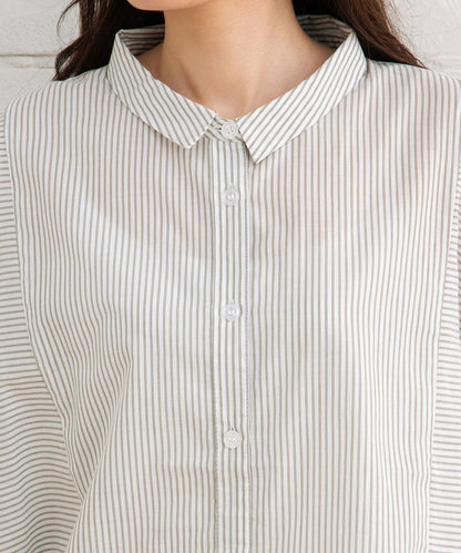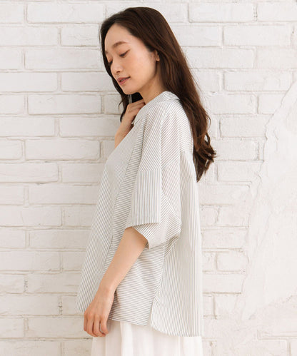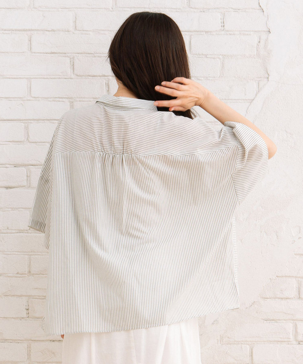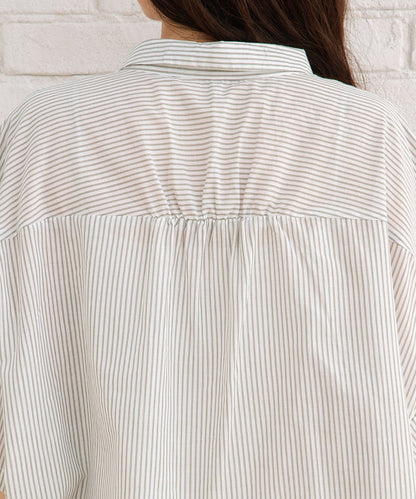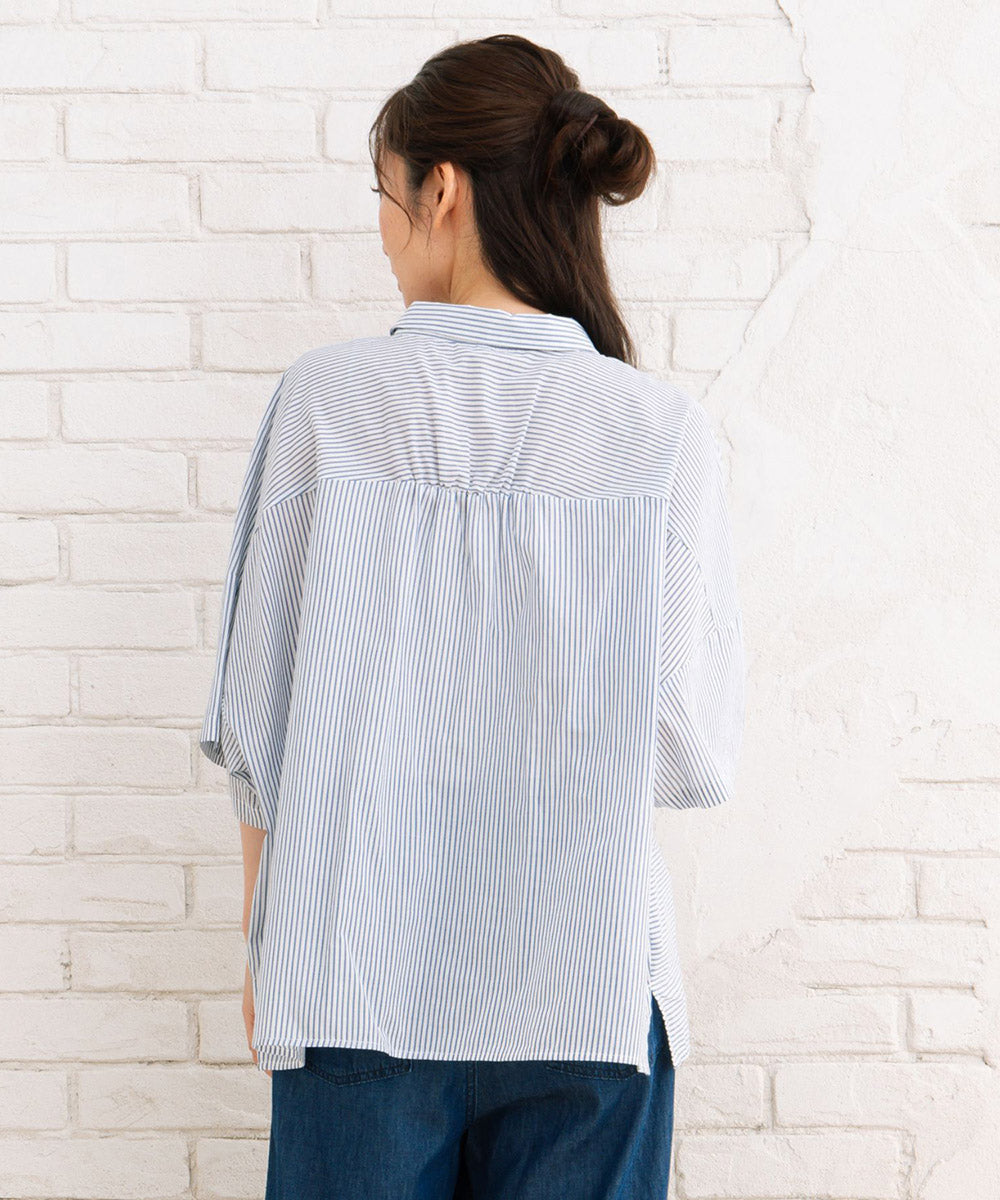 ストライプを巧みに切り替えた、表情豊かなピンストライプボクシーシャツ。