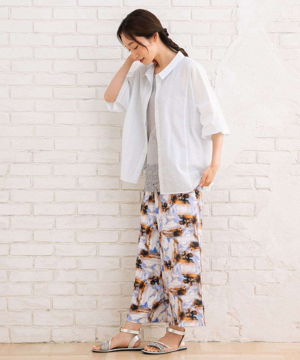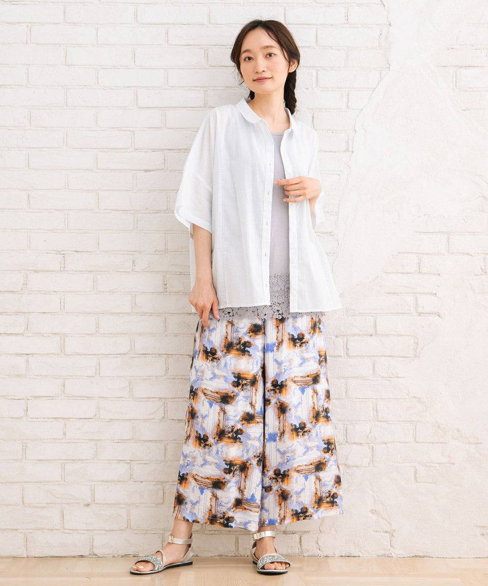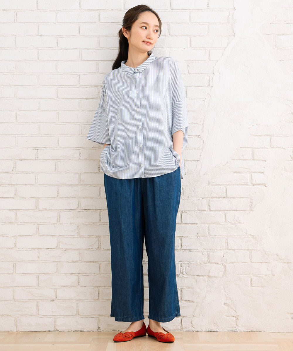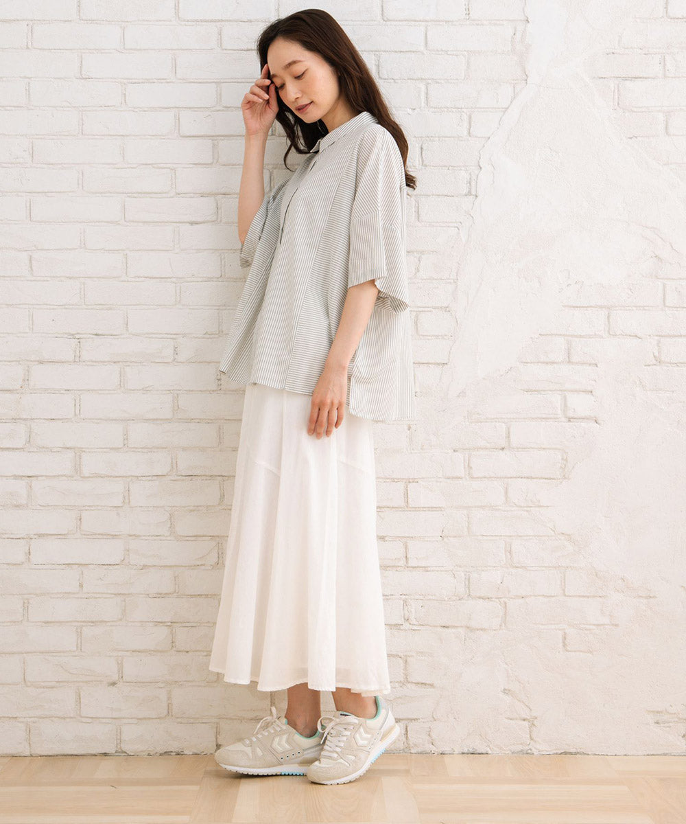 やや短めの着丈は、ワイドパンツやスカートとも好バランスで、スタイルアップ効果も期待できます。