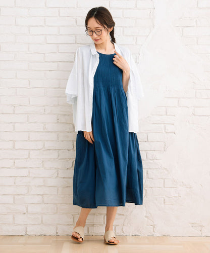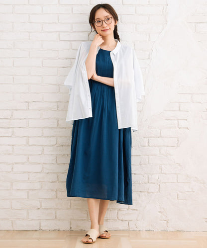 タンクトップやカットソーの上に羽織っても、ボタンを留めて一枚着としても活躍。