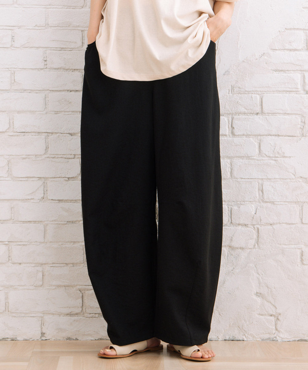 美脚つくる緩やかなカーブラインシルエットのパンツ。