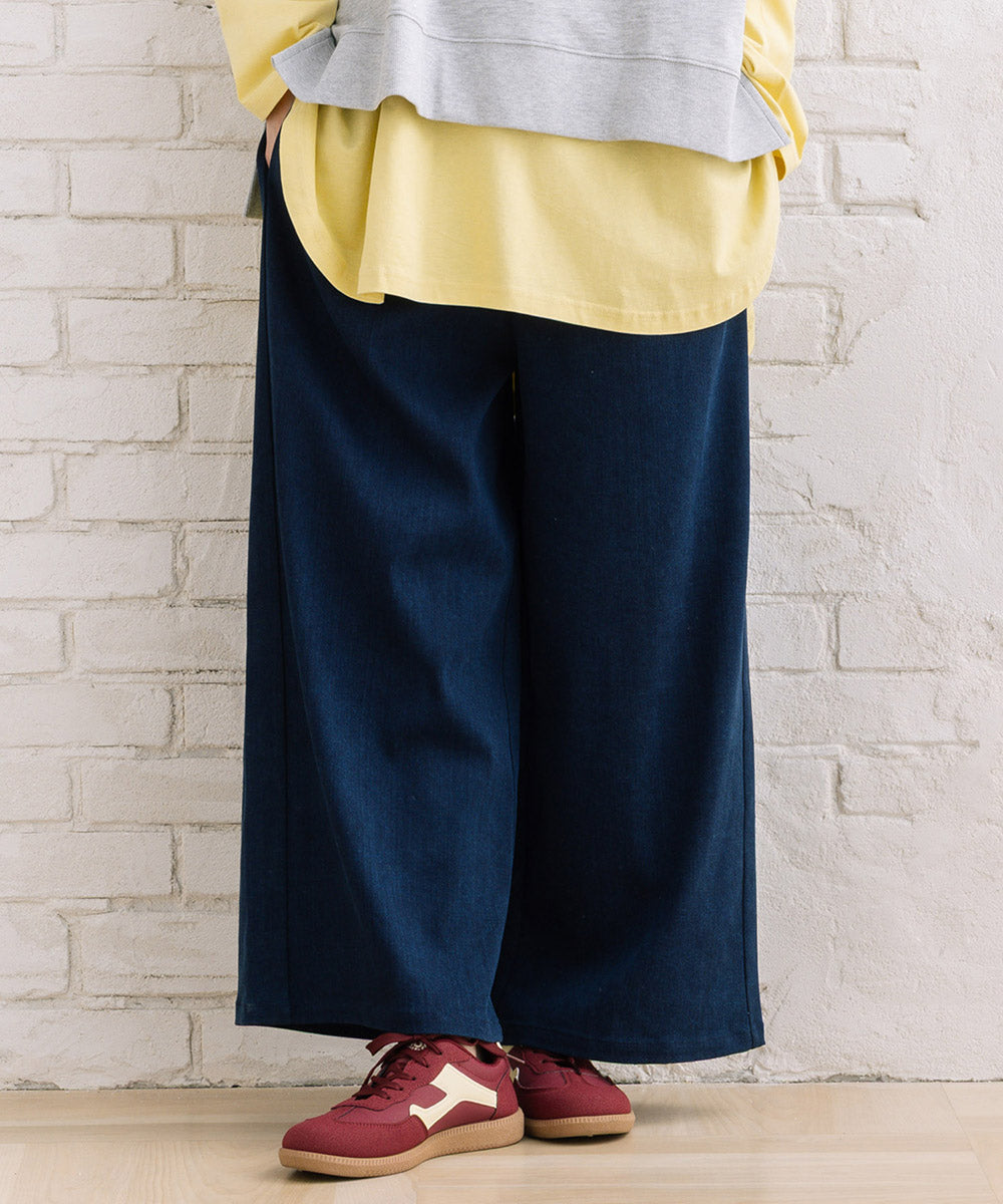 シャツやブラウスと合わせれば、程よくきれいめなスタイルにも馴染みます。