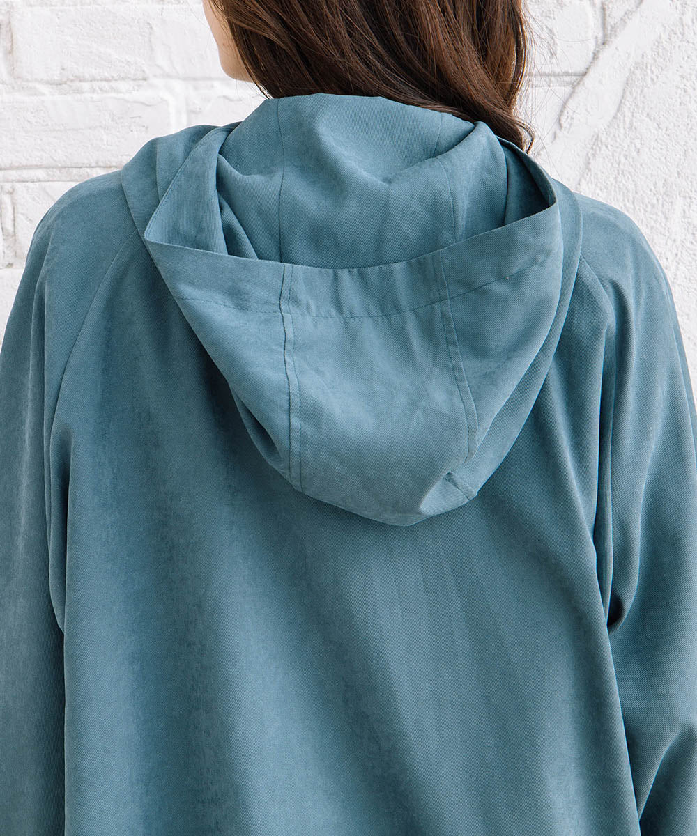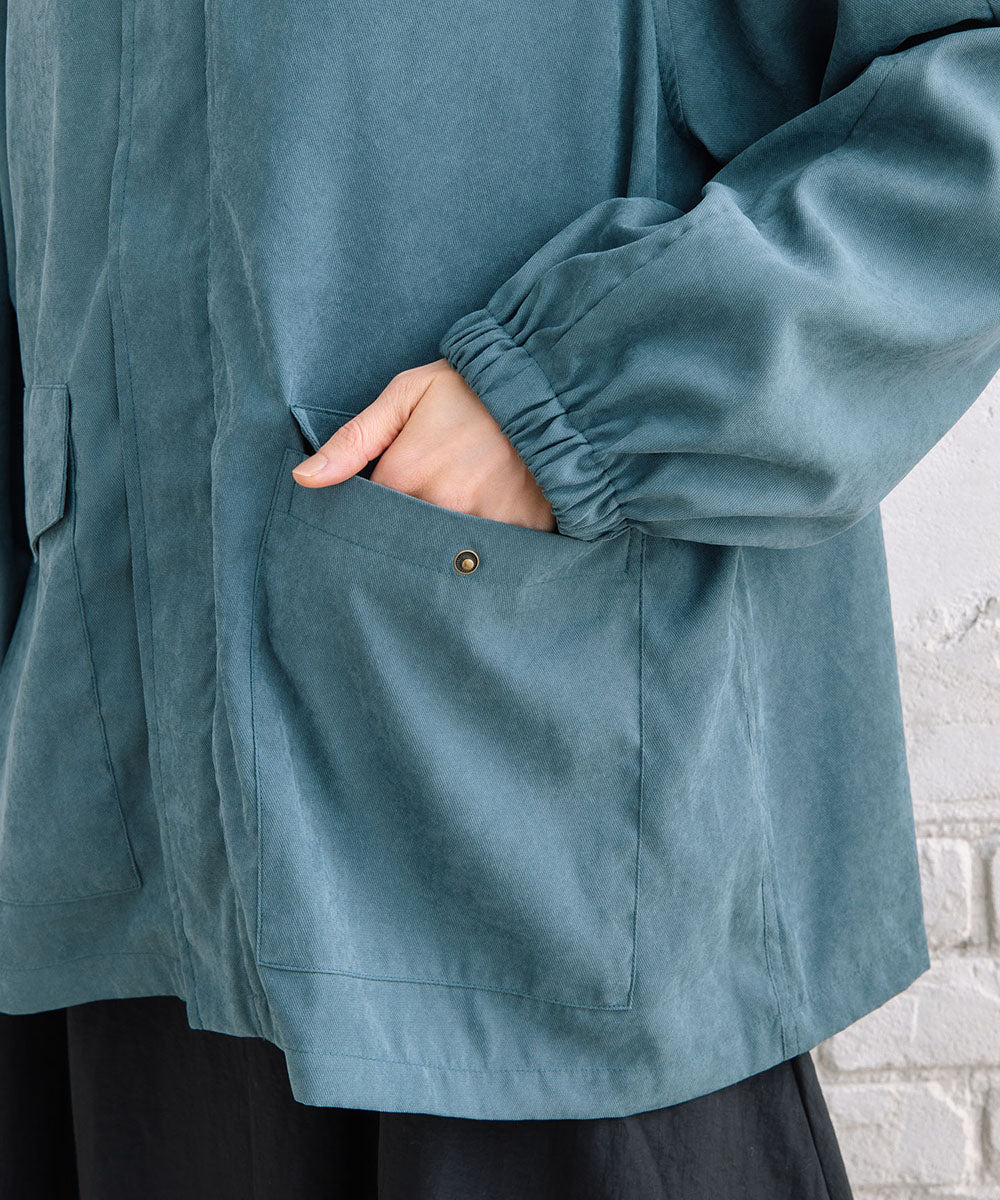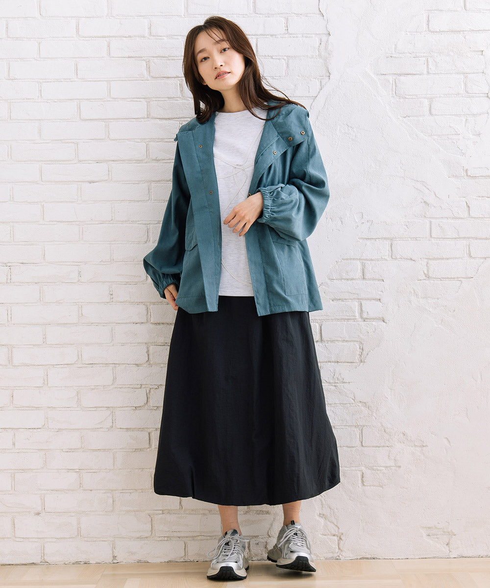 フラップデザインがさりげないアクセントになり、シンプルながらも表情のある一着です。