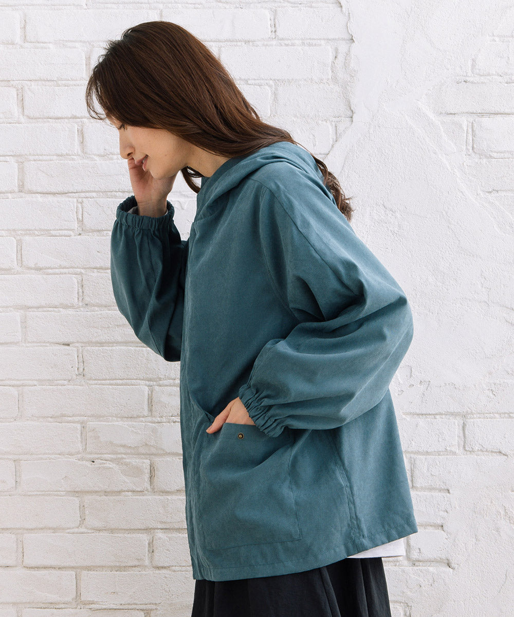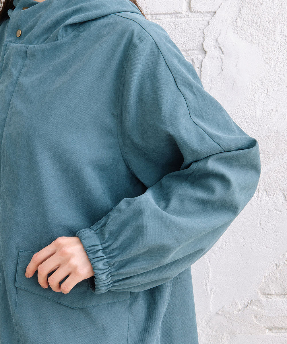 ツイル素材の落ち着いた風合いが、大人カジュアルに馴染むマウンテンパーカー。