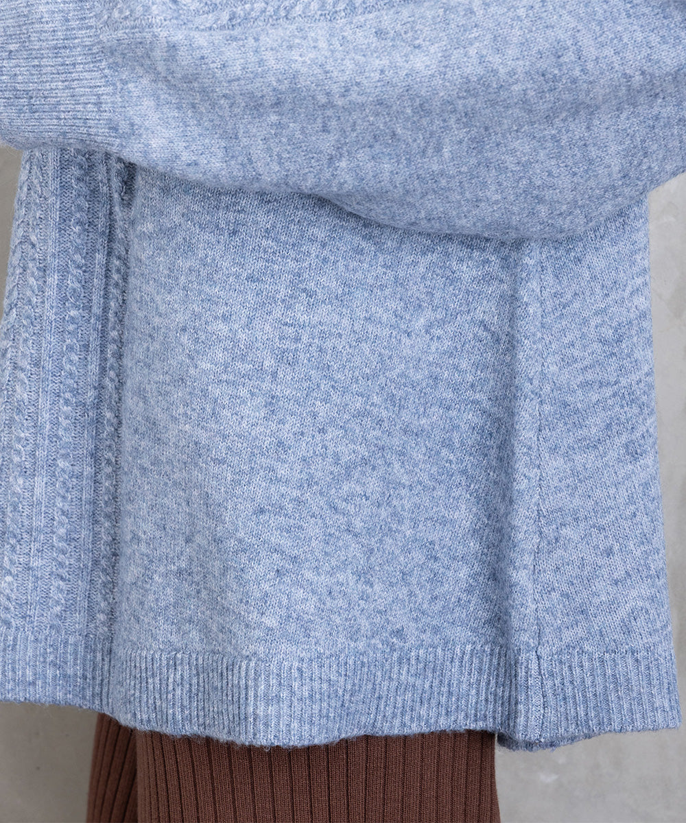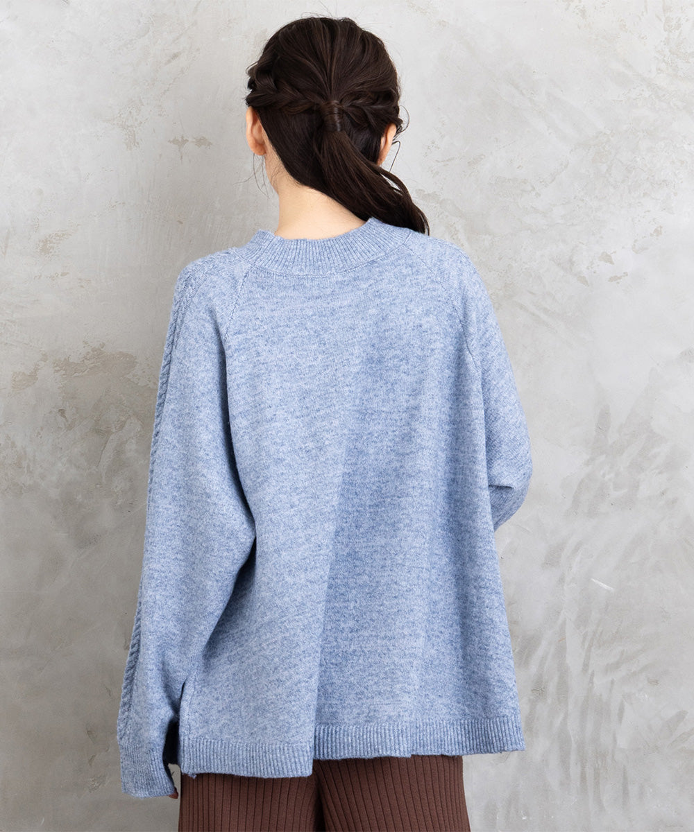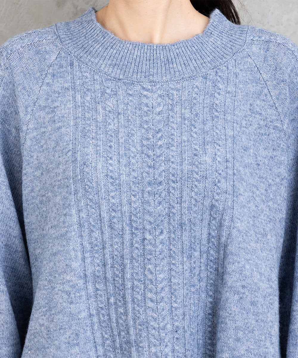 立体感のあるケーブル編みが印象的なニットプルオーバー。