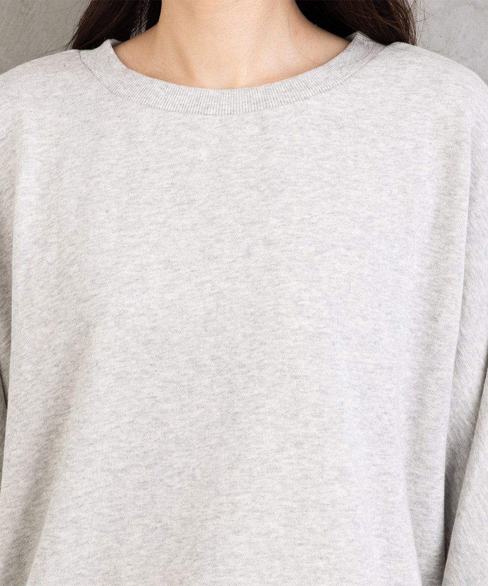 シンプルなスウェットにシャツ裾をドッキングしたレイヤードデザイン。