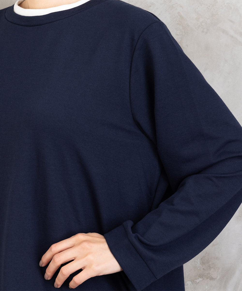 重ね着風のデザインで、一枚でスタイリングが完成します。