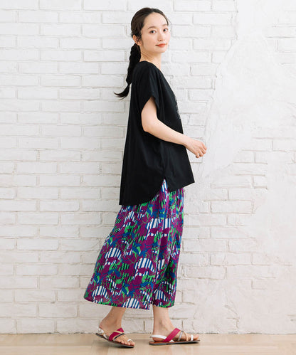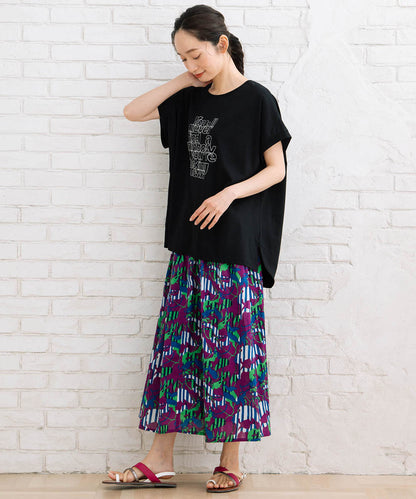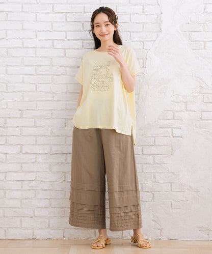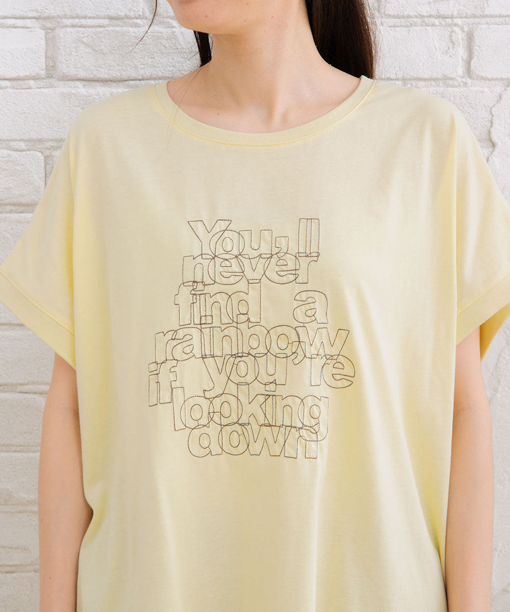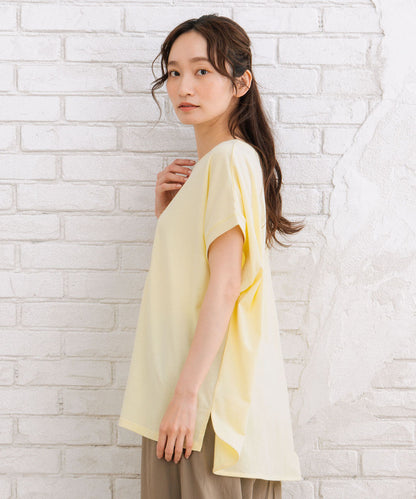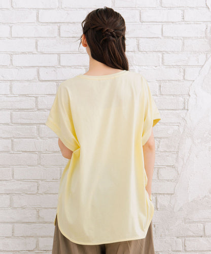 ゆったりとしたドルマンスリーブが、風通し抜群で涼しく、肩のラインを拾わないゆったりとしたデザインで、胸元にはプロバーブステッチ刺繍が魅力的。